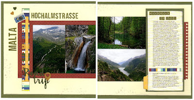 Voor deze 3e lay-out, die ik met de "Route trip" collectie van Carta Bella heb gemaakt, heb ik voor de linker pagina de Freaky Fast Formula van juni van The Scraproom gebruikt. Alle onderdelen gesneden, schuiven, plakken, titel en wat stickers toevoegen en zo een snelle lay-out in elkaar gezet. Extra snel omdat ik voor de rechter pagina een eenvoudig colorblock heb gemaakt met een indeling die ik al vaker heb gebruikt.