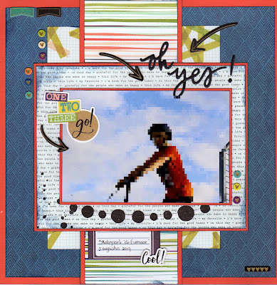 Ook deze lay-out is weer gemaakt met de materialen uit de Print shop collectie van Vicki Boutin. Je kunt met deze collectie echt zoveel kanten uit qua thema's en foto's. Zelfs deze stoere skate foto's passen er prima bij.